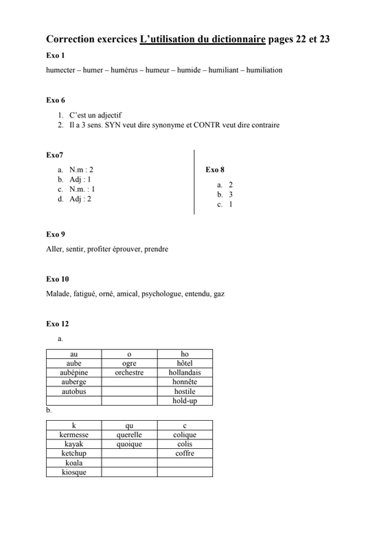 Correction Exo Français Gram & Cie Pages, 22 23 68 69