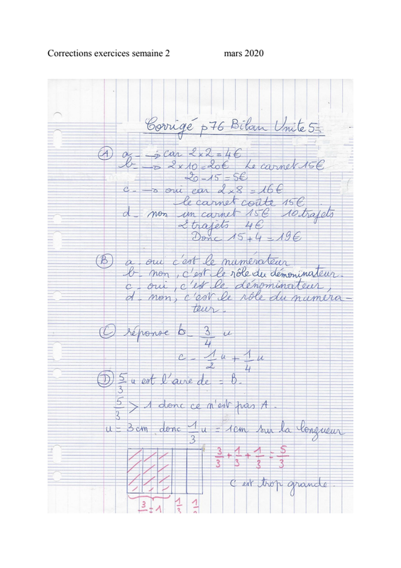 Corrections Exercices Math Et Français Semaine 2 Mars 2020