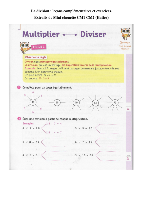 La Division Leçons Et Exercices Corrigés (Hatier)