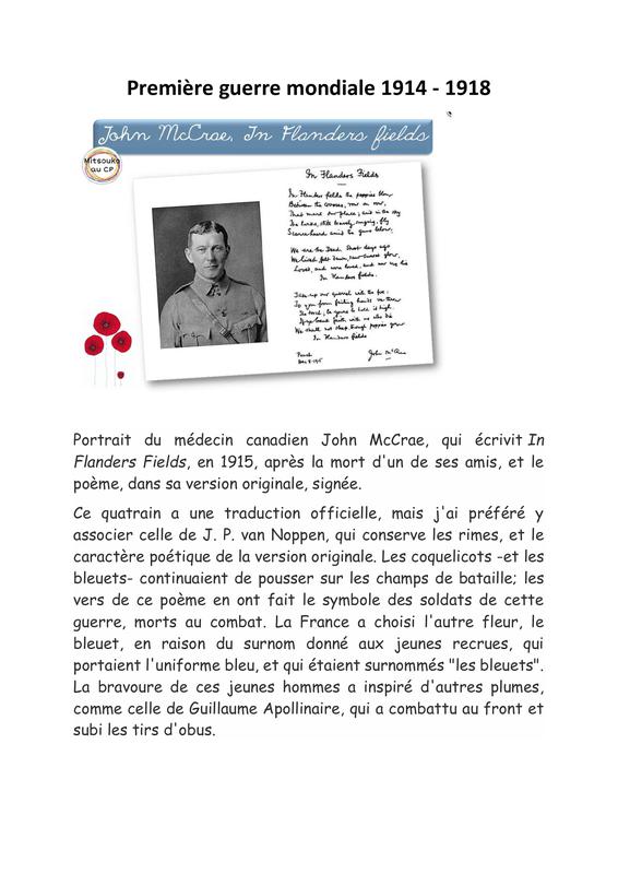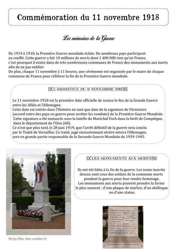 Commémoration 11 Novembre 1918 Ce2 Cm1 Cm2