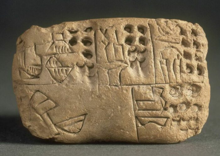 Tablette en argile Date de fabrication : Uruk récent (fin IVe mill. Uruk III (?)) (3500 av. J.-C. – 3100 av. J.-C.). Musée du LouvreRemontant au milieu du IIe millénaire, ces inscriptions ont été retrouvées dans des mines de turquoises sur le site de Serabit el-Khadim, dans la péninsule du Sinaï. En 1916, un égyptologue anglais, Alan Henderson Gardiner, déchiffra ce système graphique qui se compose d’une trentaine de signes pictographiques utilisés de manière alphabétique.