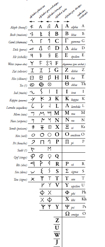 Il en fut ainsi pour l’ensemble des lettres de l’alphabet phénicien. Attention, il n’existe pas dans ce premier alphabet de voyelle6.